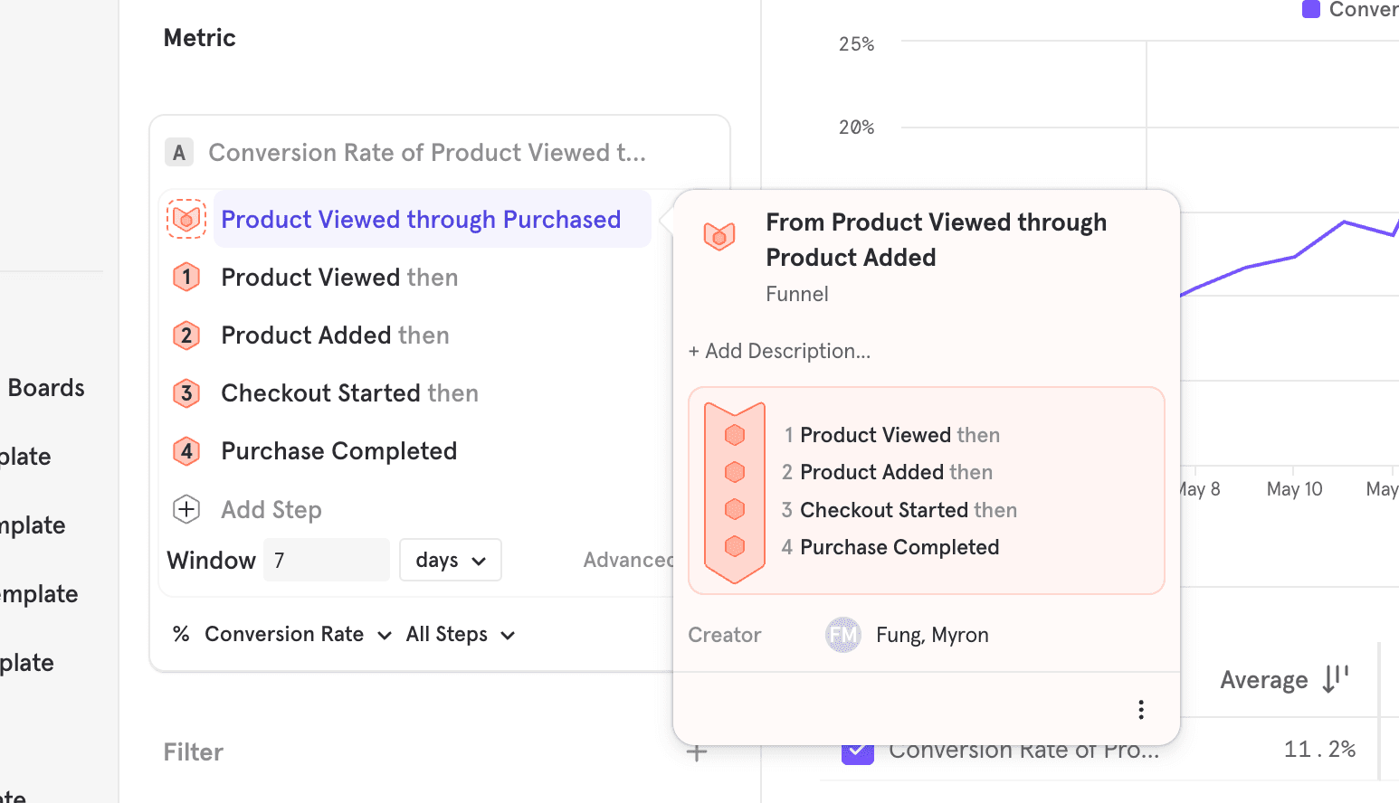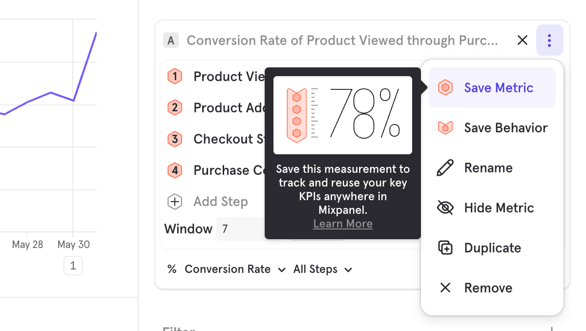 Example: Create a saved metric for your Signup Conversion Rate to consistently track how effectively users complete your signup process.